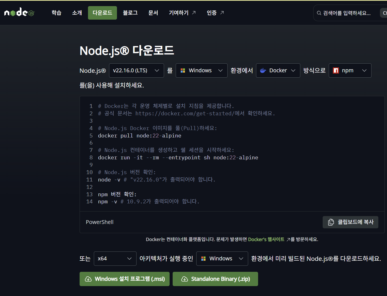 https://nodejs.org/ko/download