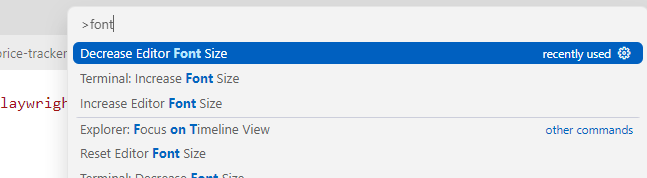 > font로 검색하면 decrease font size, increase font size 로 한단계씩 조정 가능